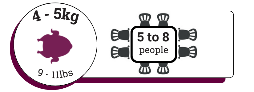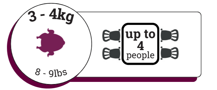 This guide should hopefully give you some idea of how many people your bird will feed. If you are still unsure then please do not hestiate to get in contact or ask one of our team on collection.